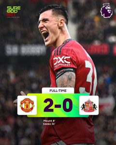 In a much-needed respnse, Manchester United beat Sunderland 2–0 at home. Mason Mount opened the scoring, followed by Benjamin Sesko, his first goal at Old Trafford.