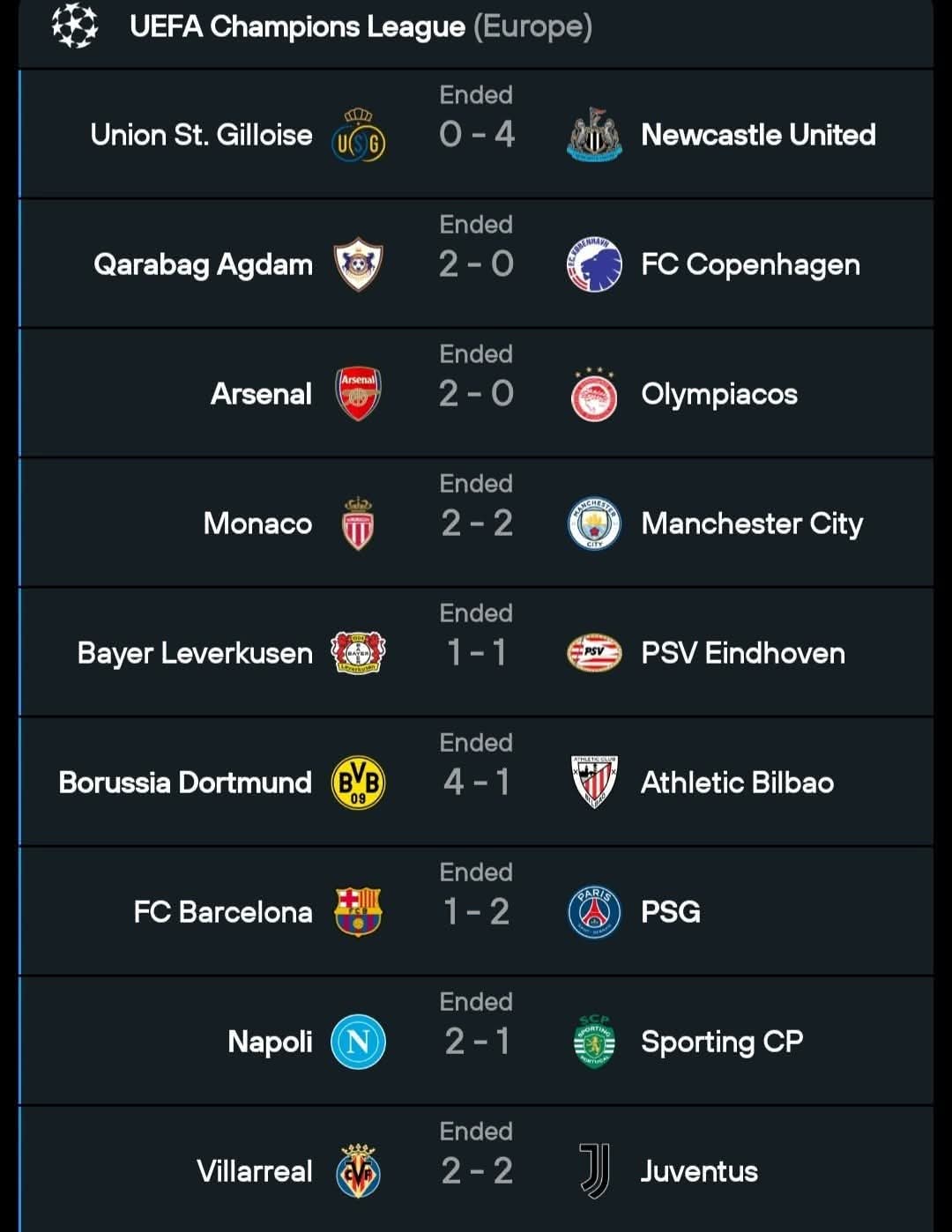 • Champions League Results – October 1, 2025: Late Drama, Shocks, and Statement Wins